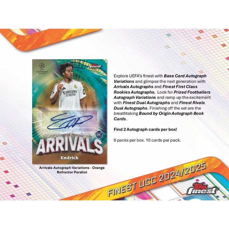 • Explore UEFA’s finest with Base Card Autograph Variations and glimpse the next generation with Arrivals Autographs and Finest First Class Rookies Autographs.