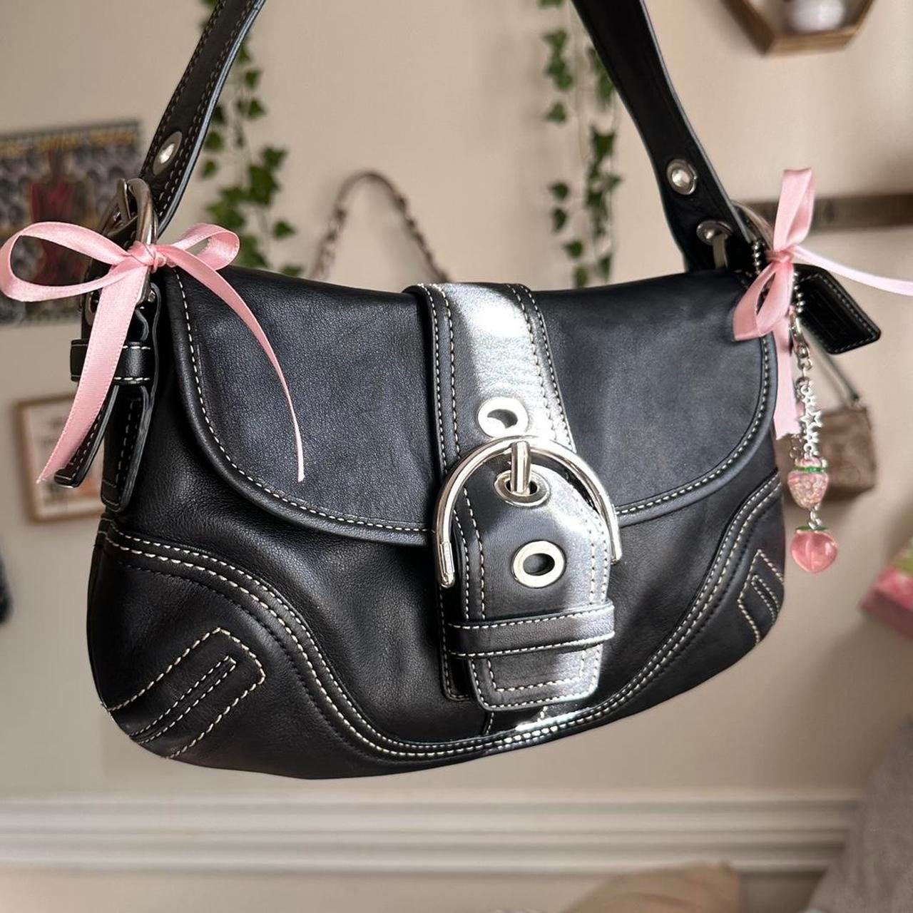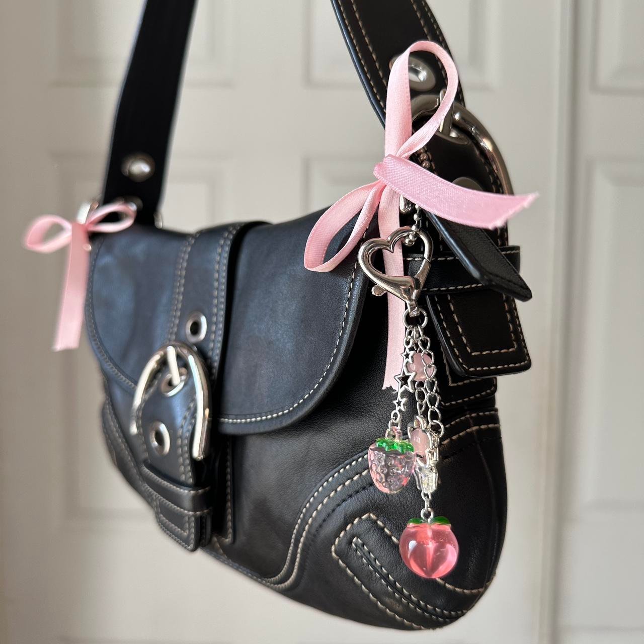 - Hardware: The bag features gold-tone hardware, which adds a luxurious and elegant touch to the overall design. The signature Coach buckle and other metal accents stand out beautifully against the pink leather, providing a refined contrast.