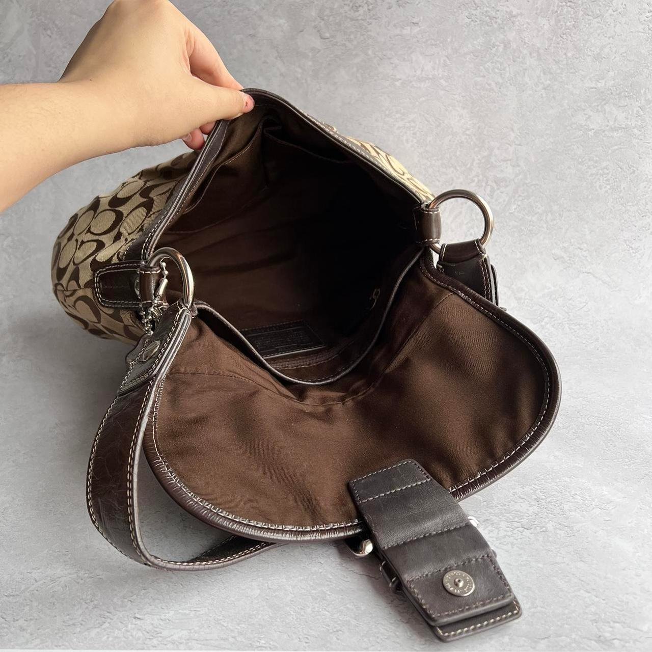 coach signature soho buckle shoulder bag – dark brown/khaki/silver