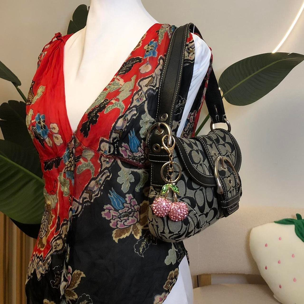 Often presented in bold, fun colors or with subtle playful motifs—such as the cherry accents or vibrant details—this bag offers a fun pop of style while remaining practical for carrying your essentials. The Coach Y2K Vintage Soho Flap Mini (2006) is perfect for anyone looking to embrace nostalgia and early 2000s trends, all while adding a unique, standout accessory to their collection. 🍒✨💕