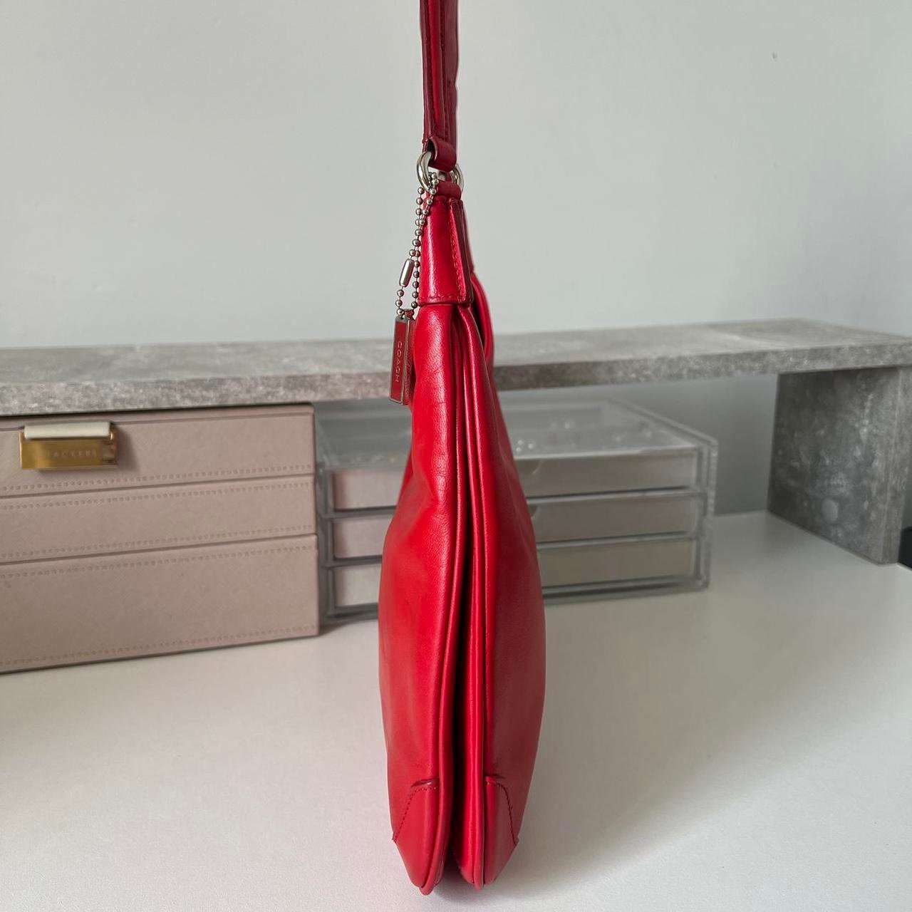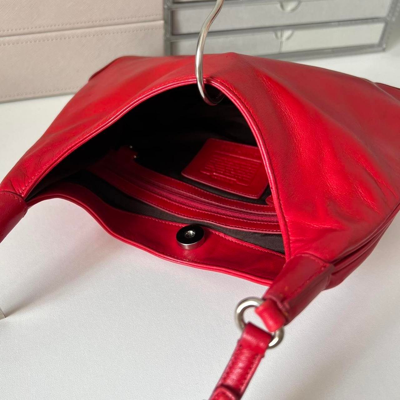 Rare Authentic 2001 Coach Ashton Lamb Nappa Leather Small Shoulder Bag – Red/Silver