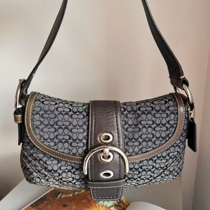 Coach Signature Buckle Shoulder Bag – Black/Grey/Silver 🍒✨💕